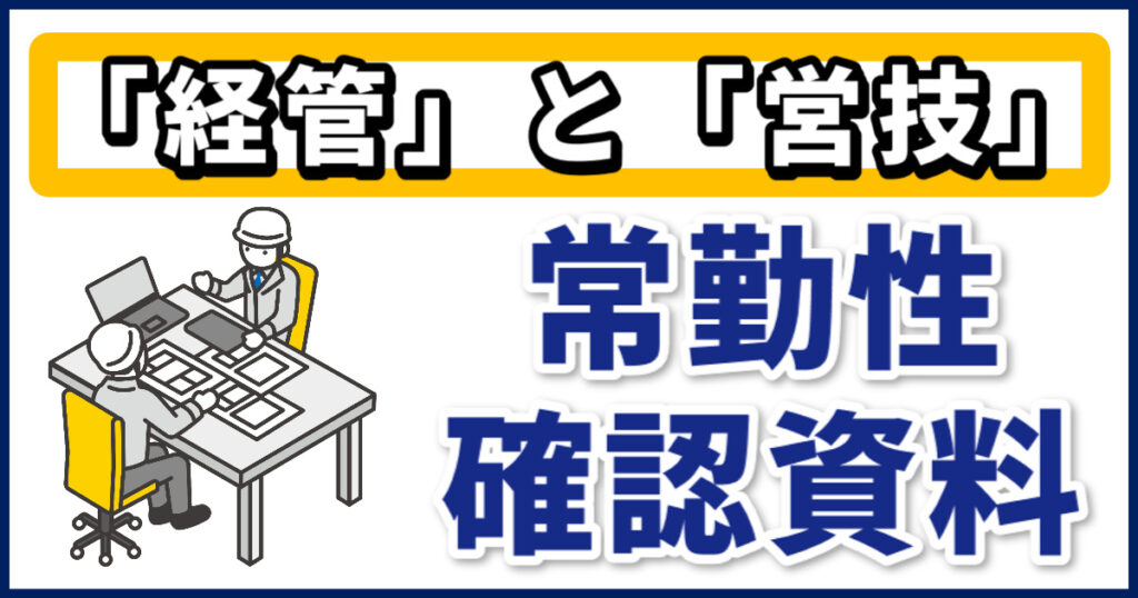 建設業許可を取得する際には、「経営業務管理責任者や営業所技術者が、会社に常勤しています」と口頭で申し伝えるだけでは、足りません。裏付資料(書類)を使って、常勤性を証明して行く必要があるのですが、一体、どういった書類を準備すればよいのでしょうか?